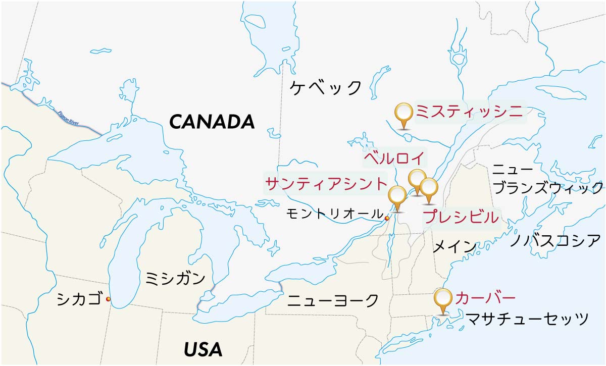 ケベック州内に4箇所、アメリカ・マサチューセッツ州に2021年に買収したDECAS Cranberry社の合計5箇所で製造・開発を行っています。